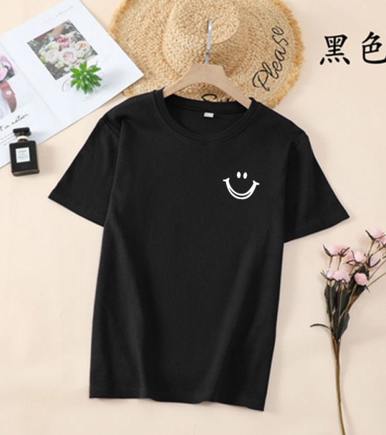 韩国T恤女士优雅舒适微笑T女士短袖卡通衬衫