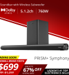 PRISM+Symphony 5.1.2ch带杜比全景声的条形音箱|760W|无线低音炮|无线音乐流|蓝牙5.0